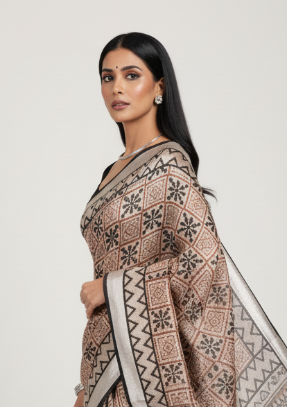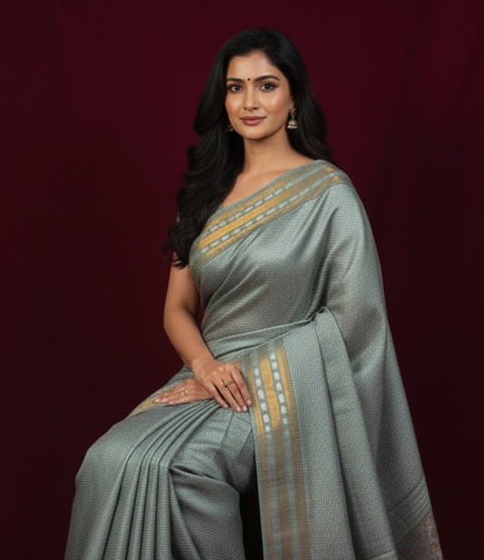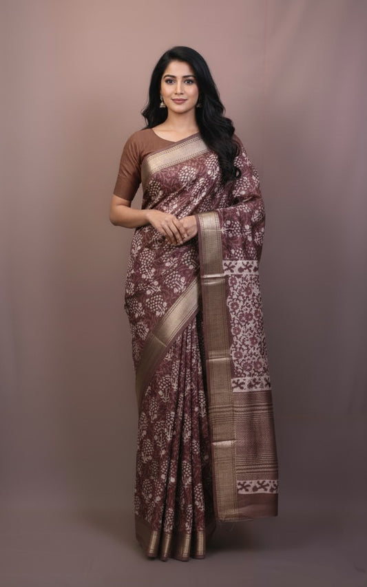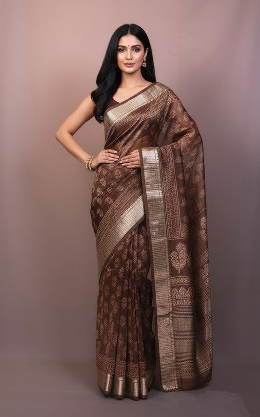 Mocha Gold Elegance — Handwoven Silk Saree with Zari Detailing