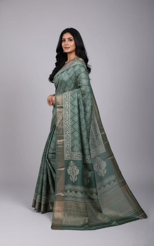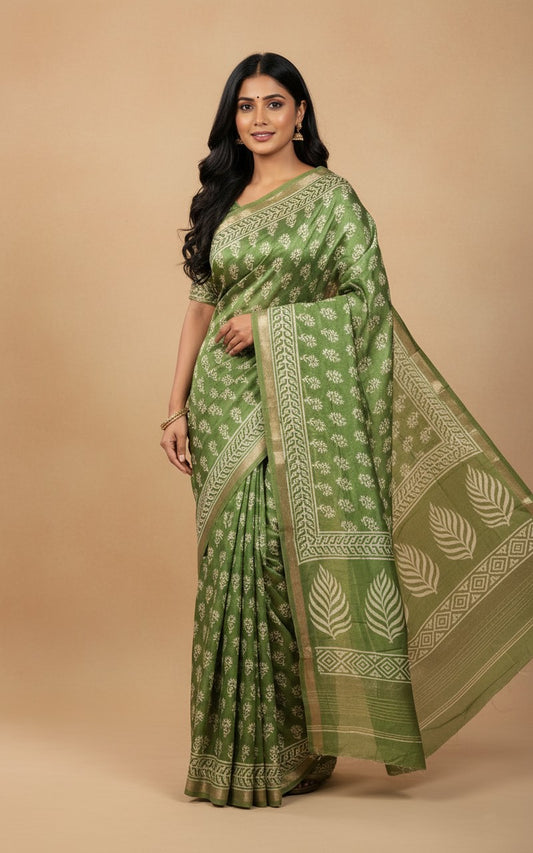 Sutrayan Neem Grace - Olive Green Mulberry Muslin Silk Saree with Floral Buta Work
