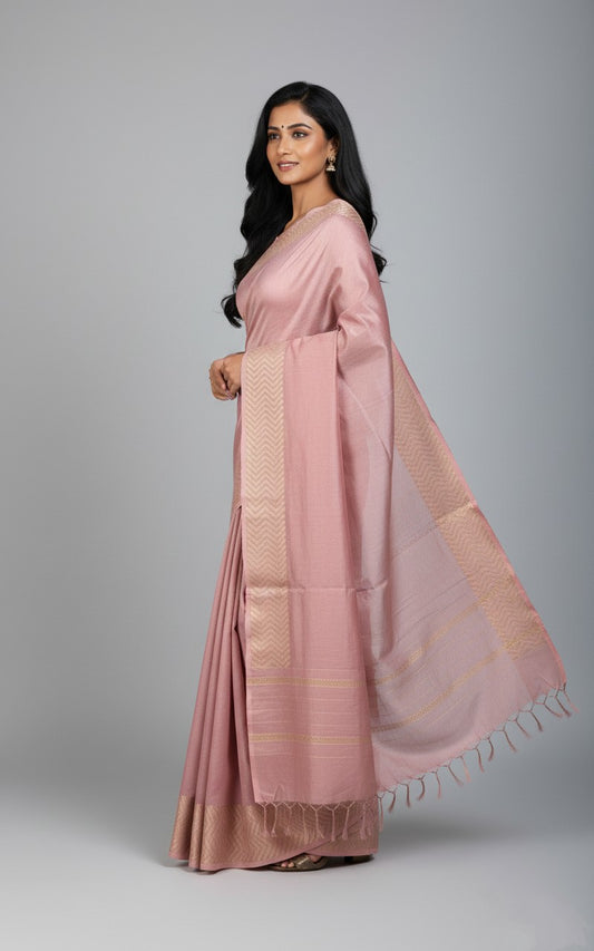 Sutrayan Rose Dust — Handwoven Chanderi Silk Saree in Subtle Blush