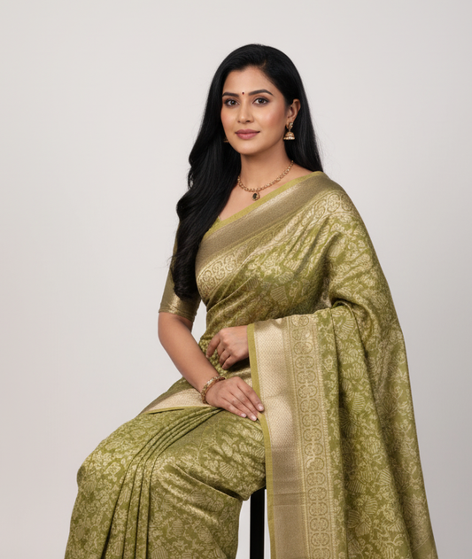 Anaya Olive Gold - Banarasi Zari Silk Saree