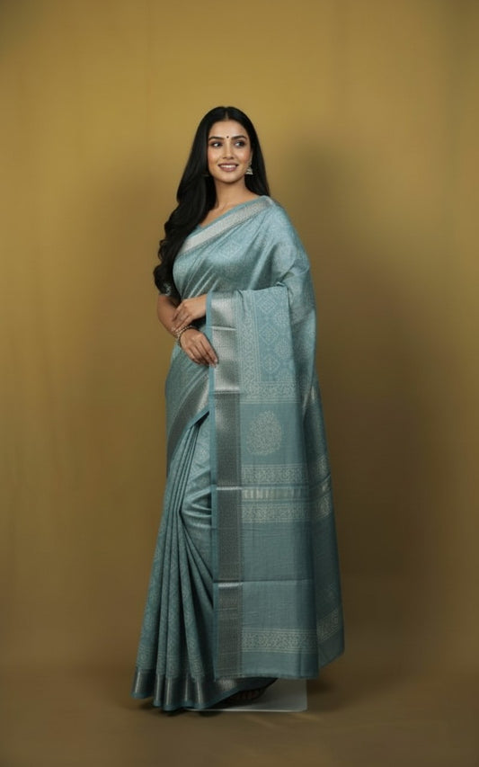 Handblock printing is not just an art, it’s a conversation between the artisan’s soul and pure silk. Every press of the block breathes life into the fabric, making your saree one-of-a-kind in the world. Draping it is draping a story of heritage, patience, and unmatched beauty. A treasure like this isn’t found, it’s claimed.