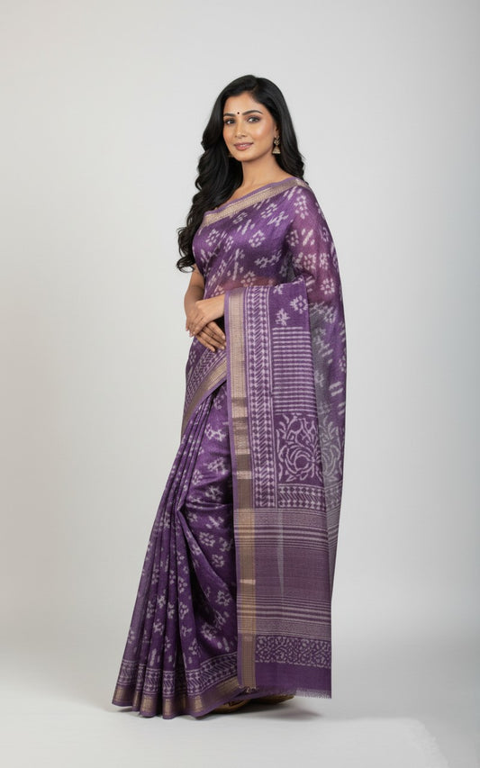 Lavender Royale — Handwoven Silk Saree with Ikat-lnspired Motifs